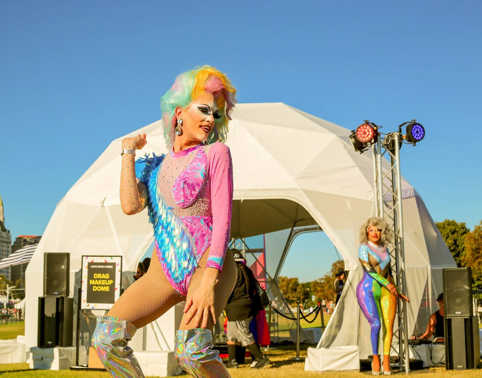 The Drag Makeup Station gave touch ups and total makeovers, with photo ops and a runway exit. The Voices Wall allowed visitors to share their messages of pride, power, hope, and encouragement. Live concerts featured Grammy award-winning artists Iggy Azalea and Natalia Jiménez. And at night, the Silent Disco Dome let dancers move to their own beat, together.